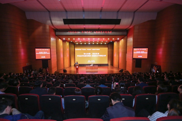 10月21日下午,校长张立钦在中校区音乐厅给师生上了题为《初心如磐 使命在肩——牢记总书记殷切嘱托 创建高水平师范大学》的主题教育专题党课。省委第五巡回指导组成员、省纪委省监委驻省教育厅纪检监察组副组长黄根来,省委第五巡回指导组成员、省社会主义学院教务处副处长杨朔江到课指导。在校的校领导班子成员出席,全体中层干部、科级干部,各基层党支部书记,二级学院系部主任、教研室主任,师生党员代表等到场聆听了党课。本次专题党课由校党委副书记蒋云良主持。