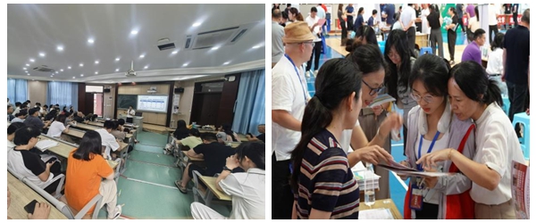 在现场招生宣讲会上,丁敢真向永嘉中学、上塘中学等六所中学的毕业班班主任及家长代表详细介绍了我校区位优势、办学特色、人才培养质量及就业优势,现场气氛热烈。学工部、生命科学学院相关人员在中学体育馆设立咨询点,为考生和家长提供针对性专业咨询和志愿填报指导。
